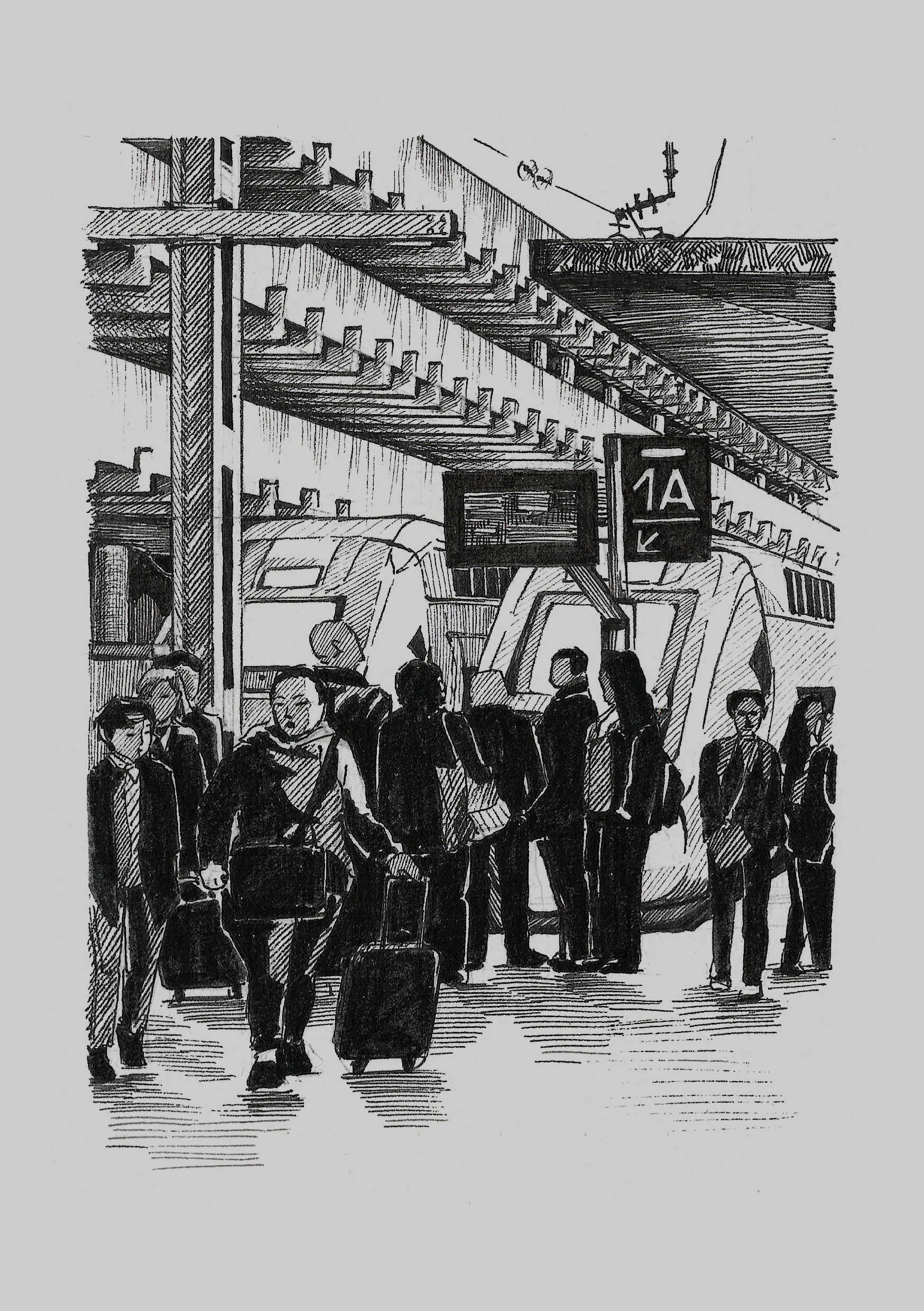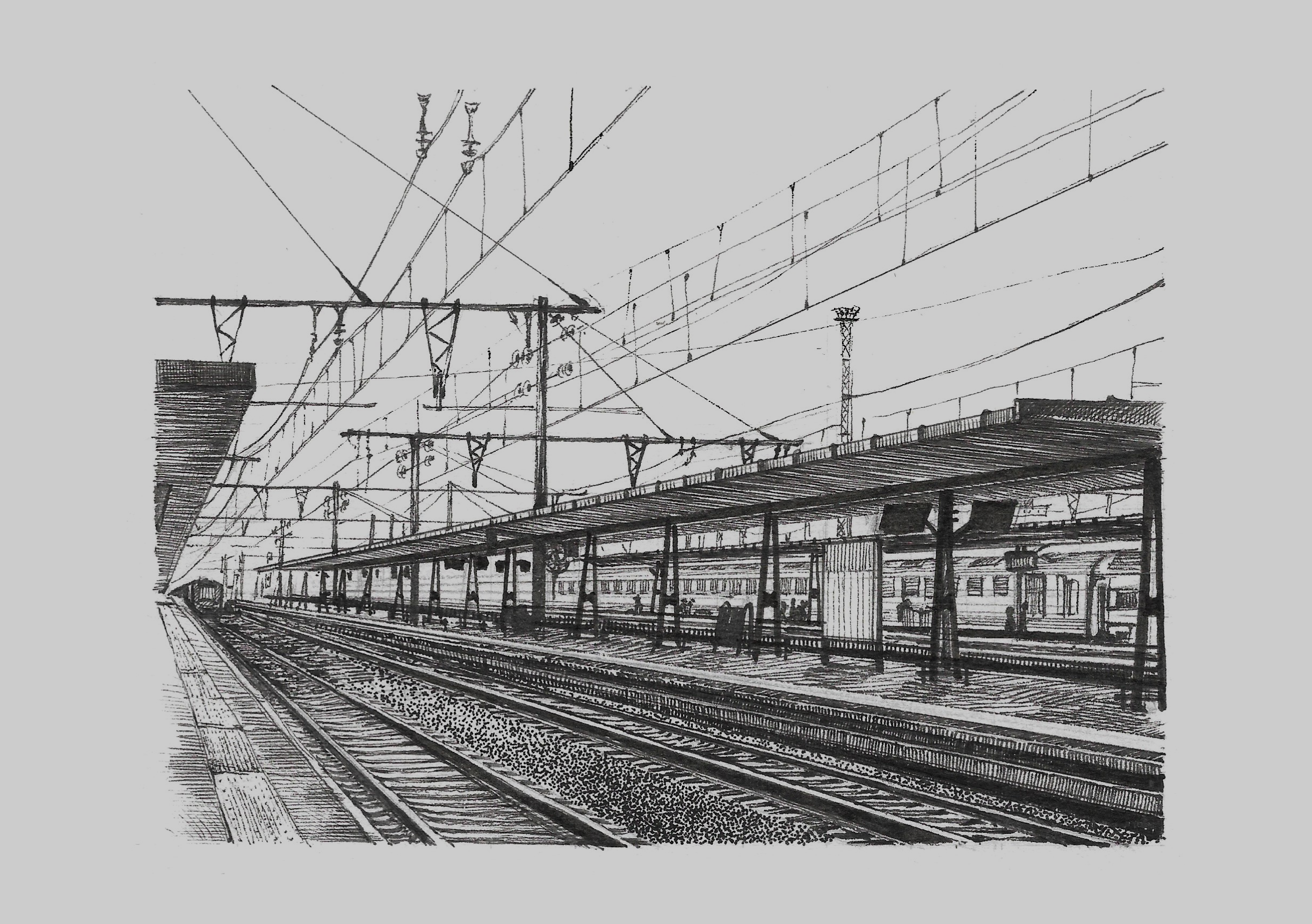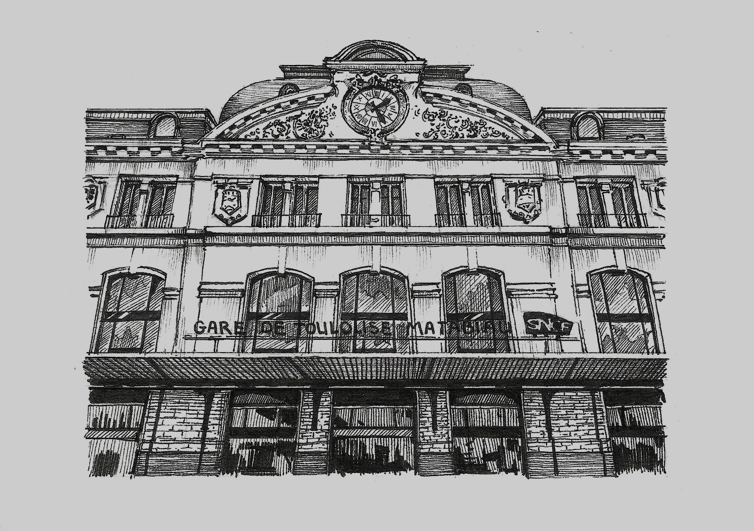 Mes croquis détaillés, format A5 à la plume de la Gare de Toulouse Matabiau dans le cadre du projet Enquête sur un lieu.